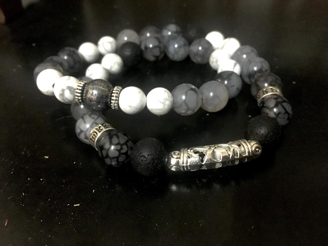 材質:太赫茲石、白松石、龍鱗瑪瑙、火山石、藏銀